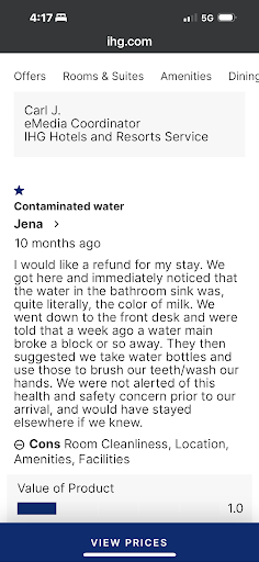 The icing on the cake of unprofessionalism was the day of check in: they canceled the room for the parents of the bride. Management has claimed in responses on here that this is not the case, however their front desk employees informed us when checking in that it was canceled, and when we asked them by whom, they told us their sales director’s name.