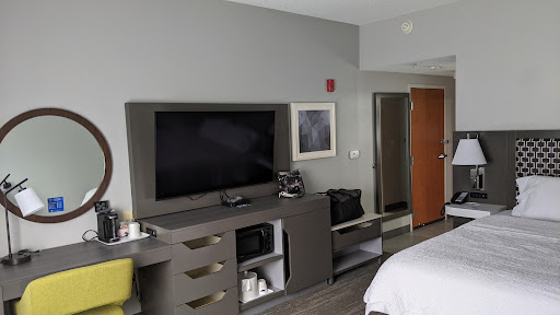 Read moreAbsolutely the worst experience of any Hilton Property I've ever stayed at. UGH!!! Requested two queen beds for two rooms. The hotel said they were sold out but would do their best. Upon checking in, they had no roll-away beds and the front desk staff were arrogant and had attitudes just because I asked what other options I had. The front desk staff told me they had a wedding and baseball team at their hotel and hence the reason they were sold out. I was kept awake despite my repeated complaints to the front desk. The baseball team was so obnoxious - they were having a party above my two rooms all night. The front desk staff, Jason, was mean spirited and acting like I was the problem - I was only trying to sleep. Then I was put in touch with Emily. I told her I would be checking out and not staying another night as I drove 7 hours and was exhausted. Emily told me the team was checking out the next day. The next day I left for a family reunion. When I returned at 5:00 PM, again I heard loud banging and screaming upstairs. I went to get coffee thinking the walls are paper thin in this hotel and there was the baseball team again. They did not check out as I was told. At this point I couldn't find another hotel - I was stuck again! Only when I called guest services at 12:30 AM did the noise finally stop! The absent manager from this hotel Lisa has never contacted me. I did receive both rooms, both nights free; however, that was no the point. I am a Hilton Honors business traveler and when I need to rest, I feel my rights for a peaceful environment were impeded and the attitudes by the front desk staff didn't make matters better. I will never stay at this location again. Also, I am rethinking my honors membership and am going to start staying at Marriott's again where the customer is...
