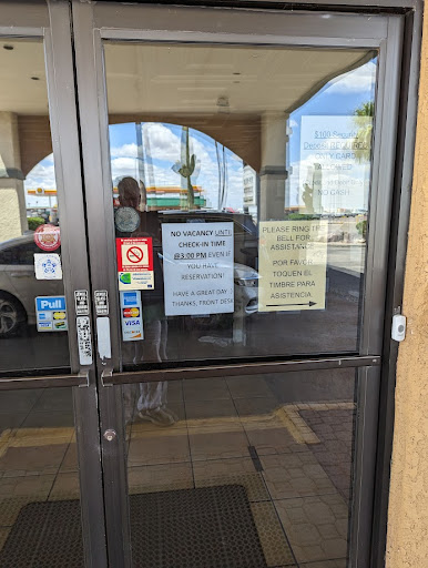 Day of check in was Dec 31st. We arrived around 7 ish. Lobby is CLOSED!! WTF. They have a buzzer/bell you can ring for assistance outside. It's the desert, sun is down lobby is closed it cold outside. Rang bell 4 times. Now panicking that I've been played and debating on calling police.... I decide to knock on glass window loudly since apparently their bell doesn't work.
