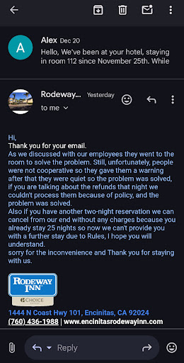 Positives? It's affordable for being in Encinitas, and it's close to the beach. The room is spacious and the housekeepers do a good job. But it's not worth dealing with the front desk 'employees'.