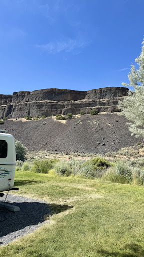 There are two distinct camping areas, one that has only full hookup sites, the other for those of us who don't require the grid. All the campsites are divided into three tiers with Premium being the most desirable (for reasons from proximity to bathrooms or park features to being outside the main travel paths in and outside the park), Basic being just that, and all the ones in between, with each priced accordingly. The three "primitive" types cost $20 (Basic), $25 (Standard) & $30 (Premium). We opted for site 26, a Premium site, and it was totally worth it. Most of the campsites are in a giant open grid, with zero privacy, but this park is more about doing stuff (fishing, swimming, biking, hiking, golfing, etc) than hanging out in your camp, so it does matter much. Mid-September camping meant no kids or parents until Friday night, and the campground was pretty empty. There is ready evidence (a half dozen or so private campgrounds in the nearby Coulee City area) that the area is PACKED come summer, so be prepared. Biking out to the lakes was a bit of a haul..the road to Deep Lake is paved all the way, so no biggie, but the other lake is accessed via pretty rough road, so again, be prepared. It's a fabulous place, and I cannot begin to recommend it enough. Go! You...