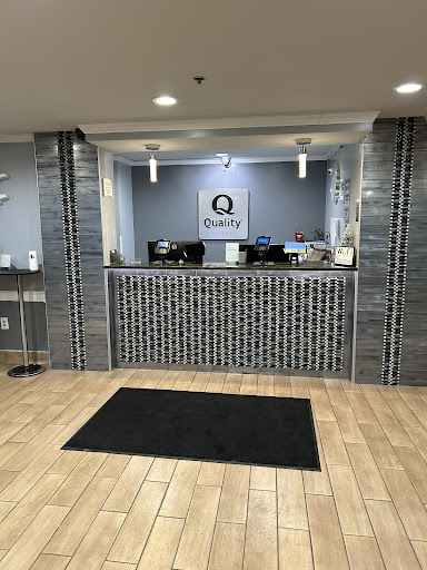 We get to our suite. No key card - the room keypad code is the room number with a "zero" added onto the end. Room 212 code is 2120. Literally throughout the hotel! Every room is accessible, because they never set a specific code for you! I can go there this weekend and walk into any room, because I know all the codes. UNSAFE! Room is an absolute DUMP. Slick one-sheet linoleum throughout - slip and fall lawsuit waiting to happen. Fold out couch and easy chair are ratty old hotel furniture from the 90's with covers on them! Person who was sleeping on it decided to not remove cover or open bed, just threw the sheet onto the couch to sleep. Shower has mold, wetbar sink drain has mold. "dining area" in suite was an old faux marble-top high table with stools. Obviously bought second hand damaged and reassembled incorrectly. Lightbox in "kitchenette" was repaired incorrectly multiple times and would have cut someone reaching up to it. Toilet in bathroom had a loose seat-nut underneath. If you sat down, you would fall off the toilet - yet another lawsuit... I reached under and secured it (immediately scrubbing my hands afterward). There was a lone cabinet pulled 8 inches from the wall with this GENIUS set-up of plugging the television into an extension cord... when there is an outlet right there... AND THE OUTLET WORKED (we plugged one of our phones in to it)! Speaking of outlets - take a look at this "quality" job with the outlets in the "kitchenette". We used a luggage cart to bring our items up, and I blocked the door with it - since the keypad codes were virtually useless - I slept with one eye open all night. Next morning, our group decided to skip showering and just get the hell out of there - except for one of us - who told us that there is no hot water, so they took a cold shower. With 5 in our group, I decided to use the lobby bathroom, so I didn't have to wait in a line. You'll find pictures of that nightmare below. Damned good thing we didn't want to use the pool. It is closed indefinitely. Empty, yet security gate is propped open for any unsuspecting guest to fall into a concrete pit. Check out? These thieves try to swindle you out of $1.50 for use of the room-safe (which we never used)... then charge you a $5.00 "resort fee". I asked what it is for. This was the morning clerk's answer: "For the FREE breakfast, the FREE wi-fi, the FREE pool, the FREE shuttle service." (NONE OF WHICH WE USED) I responded "You literally just said those are FREE. Do you not understand what that word means?" The guy got an attitude, and started arguing with me. I told him I wanted a receipt and copy of what I signed when I checked in. He got really pissy about that, slammed things around, and threw the papers at me. I told him I would be disputing the charges with Choice Hotel Credit Card - who they are part of. DO NOT GIVE THESE THIEVES ONE SINGLE PENNY OF YOUR MONEY. This cesspool is tantamount to a $39.99 roadside motel, and should be shut down immediately....