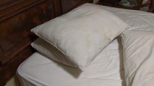 The sheets, blankets and pillow cases appeared to be clean. However, the once white towels and wash cloths were stained & grey.