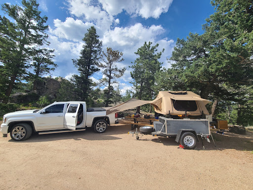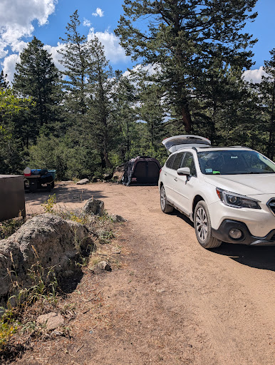 Great camping experience! Pit toilets, water spigot at the entrance to the campsite and trash dumpster. Fire pits and vault toilets fairly clean. Cool temps with low humidity. Nice trails with great overlooks of Rocky mountain national park and Estes park. Abundant wild flowers along the trails...