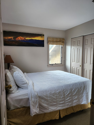 Once we arrived in the room we were a bit stunned. The bed is right next to the door in the bathroom at the foot of the bed. It's a bit weird to see that kind of setup but the mini kitchen and the amazing view of the Rockies make up for that design. The room is a perfect size for a couple or two or three adults. The mini kitchen has everything that a person might need for a weekend, and the room came with a Blu ray player. One tiny flaw was the fact that there was no thermostat or AC unit in the room. This is not a problem in the winter because the room stayed heated throughout the day. We improvised and open the window before we left for the night to cool down the room. The bathroom was very clean and very comfortable. The only problem is that the shower temperature fluctuates. It goes from warm to hot to cold to freezing cold to very hot back to warm back to freezing cold back to hot and back to warm often. This is the only reason that I would knock this establishment.