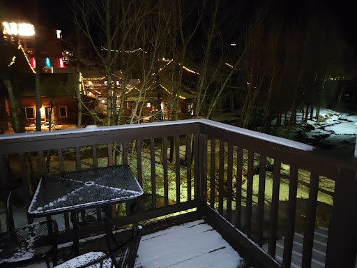 The property backs up to a creek roaring right out of the mountains. Very nice. Get a room at the back of the "square" to have a balcony or patio if you'd like to take advantage of the relaxing sights and sounds of the creek.