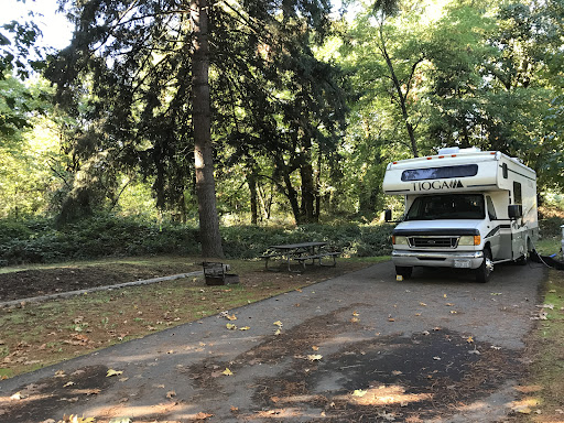 I've now stayed at Armitage Lane County campground on 4 occasions in the last year, so I feel qualified to right a review. First, the good. This is a well-kept facility, close to I5 and convenient to Eugene. This was my primary consideration for staying here as I was attending events my high-school kids were involved in. The campsites are nice, the restroom and shower facilities are clean and seem newish, there is also a laundry room. There is Wi-Fi, but the bandwidth seems low and the signal is weak in many parts of the park.||||Now for the less than good. There is something a bit sketchy/borderline creepy about this place. My first reason for this feeling comes from the camp host. This person has been the host all four times I have stayed here in the past year. This guy, sad to say, has a real attitude problem! He should not be in a customer service position since having to interact with people seems difficult for him. The first time, I put this down to him having a bad day, but I've seen this grumpy, unfriendly, borderline hostile attitude on every subsequent visit! He acts like it is a real inconvenience when you stop by his office to register or ask for the restroom door code, or... ask any question whatsoever. This is unacceptable, unfriendly and completely unwelcoming.||||Other factors that contributed to the vibe I get from this place are, when taken alone, not a big deal. Taken together, they've shaped my attitude about this place. The campground exists in close proximity to a large metropolitan area. It also has a day-use area, picnic tables and dog park. I've seen homeless-looking folks hanging out and also seen some fairly decrepit-looking vehicles parked in the campground and in the day-use areas as well. This past Friday January 12th, as I waited in the day use area, a woman approached me, mumbling to herself, and asked for a ride to "the mission". Friday night, in my campsite, sometime after 9 p.m. I heard someone knocking on my camper. This was disconcerting at night in a darkened camp. The individual claimed he'd found a wallet in the restroom the night before and was looking for the owner. This just seemed off to me, although given the attitude of the camp host, perhaps this guy thought it best to try finding the owner on his own, late at night, by creeping around darkened campsites! ||||Saturday night, around 8:15 p.m., I heard several dozen gunshots, not in camp, but close enough to recognize the sound as gunfire. Now granted, the surrounding area is rural, but target practice after dark also seems a bit off.||||On my prior visit, in late October or Early November, I had made a reservation for Armitage campground for a Friday night. I was unable to arrive until late that evening, probably around 10 p.m. As I slowly drove around the camp loop, looking for my site, I was dismayed to find it occupied. The campground was full, so I went and sought out the camp host. The office was closed, but the light was on in his trailer. He came out and eventually assisted me, but he did make me repeat my story a couple times, checked the reservation list in his office and asked me to provide ID. His attitude let me know this was an unwelcome intrusion. As an isolated incident, this wasn't handled badly, but it just seemed like another factor that has helped form my overall attitude...