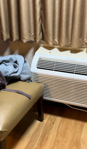 This is a simple hotel to stay in. We stayed here for a family reunion, we had three rooms 115, 133 and 135. The first room was a double bed room the other two are handicapped rooms, with a very spacious bathroom for wheel chair accessibility a pull down bench in the tub. All three of our rooms were pretty clean and didnt really have a smell to them except one that must have been a former smoking room because it had a musty smell upon entering. One of the top blankets had a burn hole in it, but it was a clean blanket probably just an old one. All of our rooms also had a mini fridge, small microwave and a small coffee maker (single serve kind). The only down side is there aren't really any amenities besides free coffee in the lobby. There's no pool, no continental breakfast which kind of sucked because we had kids with us and they were kind of bummed out there wasnt a pool like the hotels we usually stay at. They do have an ice machine in a small room next to the office with a vending machine and a coin operated washer and dryer. The downsides besides the pool and breakfast were they only had one tiny trash can in each room, no bathroom trash can just that one. They also are pretty skimpy about the toiletries they leave. We had two bars of soap and a tiny tube of conditioning shampoo, thank goodness we always bring our own. It is next to a speedway gas station which was convenient and a two minute drive up the road is a Texas roadhouseand a Bob Evans. Five minutes up the road a super Walmart, target and red lobster and a few other places to shop at. All in all it wasnt a bad hotel to stay in for the two nights was were in town for, just don't expect any frills, it's basically a you're just sleeping here for a few nights kind of place. Oh and the staff were pretty...