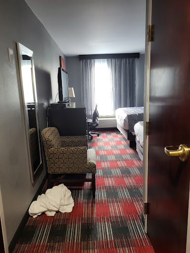 Read moreHorrible. First of all... greedy owners allow Semi Trucks to park behind the building, I assume they place their building parking lot into some rental websites for Semi Truck parking, these huge trucks - they make noise, sometimes they unload cars to make noise, sometimes they park weirdly infront of your room's AC while causing a concern of idling & CO2 blast into your room. On top of all this insanity, staff drills holes in walls, slams doors from the closets that are next door to rooms. All this drilling noise and door slamming starts at around 9am or 10am. Check out is at 11am, and if drilling and door slamming didn't wake you up.... then noisy cleaning lady will come and knock on your door at 10:35am to wake u up. Unfortunately, me forgetting to hang "privacy please sign" has resulted in telling her 3 times "no thank you, cleaning is not needed" she still knocked 4th time again after 30 minutes which woke me up again... haha. Rooms don't have freezer, and small refrigerator is locked with Flat-head screw pin on the coldest temperature of level 6, therefore all items can freeze in your fridge unless you have a flathead to adjust this horrible plastic pin to lower level of refrigeration. In my room... phone button that is for front-desk dial didn't work and always showed busy sound, I spoke to front desk people about this, and they seem to know about this common issue of phone system not reaching to the front desk. It seems to be a small family operated business by Indian family, they are ok.... they are not rude but they are also not friendly. Gym closes at 10pm which I think is too early to close gym. Beds are comfortable and AC/heat is good. Rooms are very clean. But sleep is more important and safety from vehicles sending CO2 directly into the AC was my concern. I think vehicles should not be allowed so close...