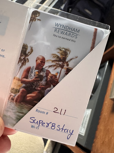 The Staff was very friendly, and the desk clerk recognized me as a Wyndham Card Holder as I use it for all the reservations I make for our trips. The breakfast was one of the best for a Super 8, normally you just get a muffin, toast, and yogurt, maybe juice. The Super 8 in Fairfield, Iowa on Saturday had scrambled eggs, hot potatoes, bagels and cream cheese, various muffins, breads, etc. Plus they have a Belgium Waffle machine, but it is hard to get a Waffle as it was always busy the half hour we were there for breakfast.