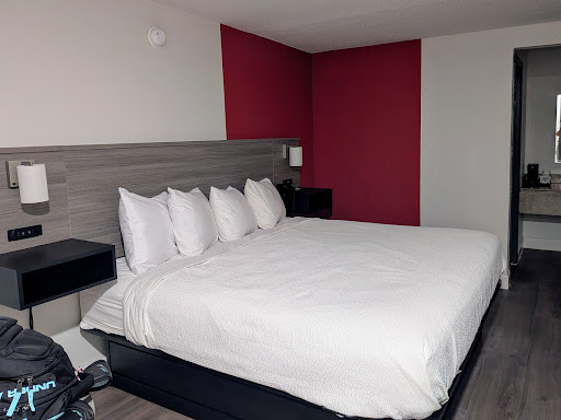 Read moreUpon arriving at the motel we are assigned our room once the attendant finishes his personal phone call. When we went to sign up for the free shuttle service (sign up sheet had a smashed fly and guts smeared on it) we noticed someone with our same room number was already signed up. The attendant apparently gave our reserved room to the person before. He assigns us to another room. When we went into that room it smelled of a nauseating amount of cigarette smoke and also had two double beds. (We reserved one king bed, non-smoking). When we went back to the front desk a different attendant was there and when we told him the room had two doubles he gave us a you're SOL attitude and said "Well, we don't change the reservations here" insinuating we screwed up so my husband pulls up our online reservation which in fact states we reserved a king bed, non smoking room. He assigns us another room. That room, queen bed this time, smells even worst than the first and is filled with an overwhelming aroma of weed. The main overhead light also does not work. We go back down, but this time no attendant and a line of angry people at the desk. We all wait for 20 minutes until the attendant comes back from dropping a shuttle off at the airport. He assigns us a third room and let's us go check it out. This one smells like someone gave their dirty dog a bath and then let the wet dog roll all over the bed and furniture and then dumped the bath water onto the carpet and just let it air dry over the next several days, but it smelled the best out of the three, had a queen, and our standards had dropped significantly from when we arrived so we were ready to call it ours. (Arrival standards being those of two people who were willing to stay in a 2 star motel because it's only 52 bucks..not high..but this one took it to another level) We left our stuff in the weed room so the attendant gives us the key back to go get it. We get halfway back to the room and my husband notices it's the wrong key so we march back to the desk. This motel doesn't have an elevator so each one of these trips to and from the desk is up and down a couple flights of stairs. He tells us no, it's the right key. Okay..back to the weed room. Nope, definitely wrong key. Back down. Get the right key. Back up. Down to the third room. The service was so terrible and situation so ridiculous all my husband and I could do was laugh, but that could of also been the MJ contact high we were on. This motel is certainly for you if you like wearing flip flops indoors, getting a solid cardio sesh in at 1 AM when all you want to is go to bed, cobwebs for your wall art, and enjoy the feeling like you need to shower again once you've...