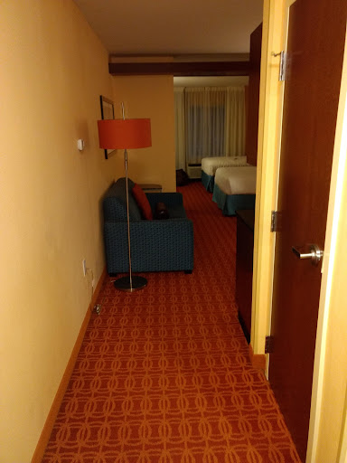 Cons: the room smelled kinda weird. I also saw people just randomly bringing dogs in, which I thought was not allowed. My room smelled "doggy", so I didn't love that. Stop lying about your rando pets being service animals, people, you're ruining things for those who actually NEED them! It was also kind of humid in the room the entire time. I made the mistake of leaving the window open for a day to see if it would air out. Don't do this during ragweed season, y'all. Zyrtec saves lives. I think if the hotel would put dehumidifiers in each room it would drastically improve both the humidity, and the random "hotel smell" that I seem to find everywhere.