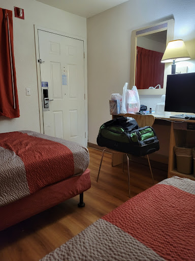 Read moreI did not expect to be impressed, I was just looking for budget friendly accommodations for the weekend for my husband and I to go to an event in Flagstaff. Less than impressed, I was almost disappointed enough to forfeit my payment and go somewhere else. ||We were planning to share the room with another couple and thank goodness they backed out because this room was barely large enough for my husband and I. There was barely enough room for the two double beds which were each pushed up against the wall with a narrow space between them, just big enough for the nightstand. Which had no outlets, btw. There was a small desk with a wooden chair, and a tv. There was an outlet to charge my phone, but it was behind the tv and was pretty overloaded since it had the fridge and the microwave plugged into it too. |Speaking of the fridge, while it kept our drinks for the next day cold, it also leaked water all over everything somehow. ||There were no drawers, which is fine since we don't usually unpack for just a weekend, but there was also no closet. Just a clothes bar in the bathroom right next to the toilet. So my coat and dress for the next day had to be hung next to the toilet (which was thankfully the cleanest thing in the room). ||The sink area wasn't spotless but was clean enough to use. I refused to use the shower. It was probably safe, but the shower floor had no barrier between it and the bathroom floor, and when my husband showered it made the entire bathroom wet. The shower head was a handheld and mounted about 5 feet off the ground, so unless you were very short or in a wheelchair you had to hold it in one hand to shower properly. ||The sheets were clean and the walls seemed to have been painted recently. The floors looked clean at first, but then after walking across them I had to wipe my feet off before getting into bed and again before putting on socks. The flooring was new, but dark, and housekeeping is obviously not cleaning the floors between guests. ||I've stayed in many motel 6s over the years, and as a place to sleep they're usually just fine. But never again this one. Because it was a weekend my cost was over $230 for the two nights. For just a few dollars more I could have stayed at another cleaner hotel that included breakfast, a closet and a proper shower....