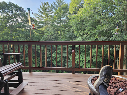 What a fantastic experience!! From the moment we crossed into the lodge from the folksy porch, we felt welcomed and pampered. This B&B is setup in the most inviting rustic and natural setting ever but not lacking whatsoever in the creature comforts of modern day. My wife (and admittedly myself) were in awe of the back porch setting with comfy chairs, rockers, swings and tables as well as a huge fire pit (Propane) on the upper deck and tower heaters down below. But, was the most captivating was the beautiful garden beyond the 3 triple decks! I've never seen so may beautiful butterflies in one setting floating from plant to plant and of every type imaginable. The Gardner for BCL is to be commended for an exceptional job of creating a natural wonderland of the perfect blend of trees, shrubs plants, vegetables and flowers. The vast population of delightful butterflies was only outdone by the equal number of hummingbirds that buzzed in and out of the feeders and plants all day! Honestly, you could grab a rocker, a cold drink and just watch the garden show all day, LOL!