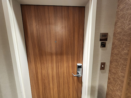 Check-in was uneventful and staff was fine and not very talkative. The atrium area was huge and modestly decorated for the holiday season. There was a corner market with snacks and food if you needed it. We had brought our own. Not sure about restaurants in the area as we didn't look. Be aware that there is a parking fee for the hotel. There were plenty of spots everywhere so not sure why they were charge extra for parking as we are only used to this is crowded big cities.