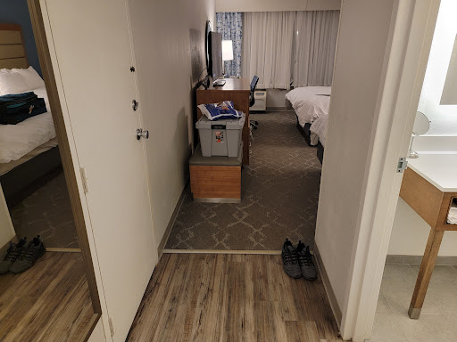 The room was subpar. For the 140 a night (I get it was the weekend) the bathroom could have been cleaner and nicer. The corners were dirty. Chipping wall. Walked into a spider hanging out in the complimentary soaps. The nightstands were cracked and had a slope to them so everything including cell phones just slid right off lmao. It was irritating to find a phone alarm going off on the floor. The air conditioner was tucked, had to keep it running all night just to breathe and not be hot. Left the hotel room for the day for our business events and came back to no room service done, but someone was clearly in the room, The air conditioning fan was turned clean off so the room was hot. Not sure why hotels are doing the no-room service thing that happens at hotels more and more. Clean towels etc would be nice, especially for what you're paying.