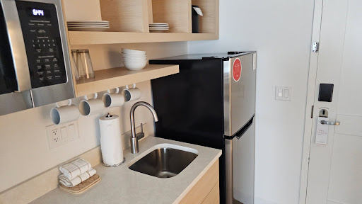 Read moreLet me first say, almost gave this 3 stars, only because of some unacceptable, type of customer service issues, that had happen, but, someone the next morning relayed, they would get that situated. Now, that is out of the way, the location is a good location, not right in front of the freeway, some might like that, but, its still off the frontage road, easy access, the building is still newly and things will get evened out, it was quiet where I had the room at, it looks like they have EV stations, for some that might be looking for that, I would call the hotel to recheck to make sure, it is ready for recharging on that. decent size meeting conference room, for personnel that is important to, the kitchen area, you basically, have what you overall need, a counter top type cooking area, nice size refrigerator, cooking items and even there was a roll of paper towelness, which, how many places, you are not going to see that. The bedroom was comfy and kitchen was nice...