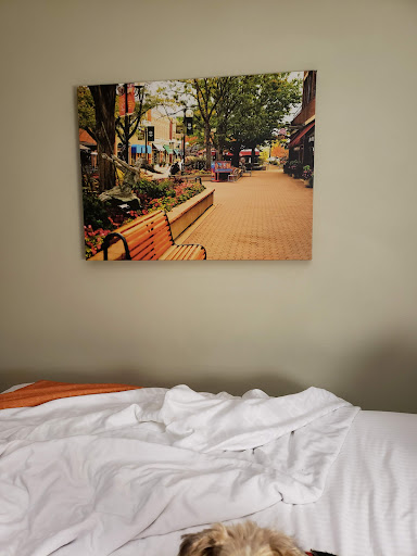 I spent a week here and probably would have rated it higher if I wasn't spending 150 a night for the pleasure. Here are a list of things you have to deal with for the premium: 1.) No early check in unless you want to pay even more. I showed up 30 minutes early because my classes ended early and the front desk people said I would be charged an early check in fee and didn't even ask if that's what I wanted to do, so I walked out until later. 2.) The parking is 15 dollars a night and was horrible. There were spots that couldn't fit a car that people were parking in and other people brought trailers and crap and blocked any ability to park or back out. It's a free for all with no enforcement so good luck getting out early if someone shows up at midnight blocking you in. 3.) The roofs don't have gutters so when it rains, it down pours all the rain onto you when you try to get to your car, picture attached. 4.) The wifi is slower than my uncles farm way out on eastern colorado. Picture attached. You'd think there would be workable internet in down town Fort Collins but nope. Good luck if you have homework like me or a job that needs a video feed. I used my phone internet. 5.)The rooms are falling apart. Paint is peeling off the walls, doors, and trim. The trim was falling off the wall in some places. I forgot to grab a picture of it. 6.) The AC struggles to get the room cool at all. It was 70 degrees outside most of the time I was here. I left the AC on to 66 and it only got to 68 as the coldest. Picture attached. Thank God it wasn't hotter or I would have melted at night. 7.)There are no wall outlets that are unused to plug in labtop/ phone chargers etc. They have lamps in the rooms with outlets but they are so old, the ports don't work at all, or they slip out with the tiniest breeze hitting it. Massive fire safety hazard. 8.) There are no door or shower curtain on the showers. So as soon as you turn on the water it jets water everywhere. The shower is in a tiny room with the toilet. So anytime you use the shower you have to clean the floor unless you want wet feet. The water will sit there all day even with the fan on. Pictures attached. So for 150 dollars a night, you too can feel like an Airbnb guest. 9.) This place allows dogs so good luck sleeping at night when people show up at midnight with their loud barking dogs and the walls are so paper thin you can hear a lot of what the neighbors are doing.