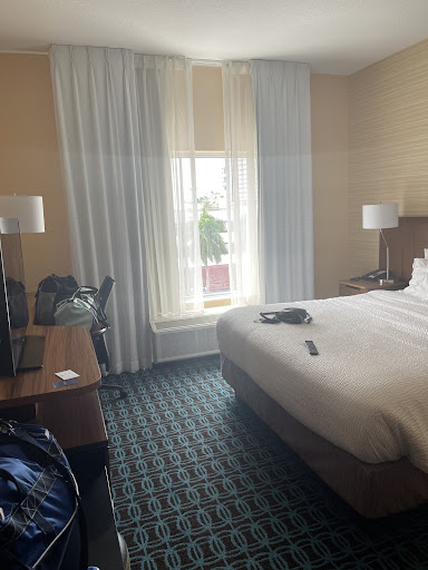 SECOND-The staff seemed unaware that they're in a service driven industry & they represent the Marriot brand. If no one takes the initiative to resolve an issue, that issue usually compounds & causes unnecessary stress. We reserved this property because of its proximity to Port Everglades and because of the $10pp shuttle service to the port. When we arrived we were told there were 3 pick ups. We chose the 1145 & were told to be in the lobby at 1130. After waiting in the lobby for 45 min, I HAD TO ASK if there was a problem with the shuttle. After making a call, his response was, "its running a little late but it should be here in a few minutes". Since when is 30 min a little late? There were suitcases & people everywhere with little to no seating and it seemed like the earlier shuttle was also running late. At 1230 with the next wave of guests crowding the lobby for the 1245 shuttle and with still NOT ONE STAFF MEMBER taking the initiative to address the issue, I asked a different staff member about the shuttle only to be blown off with, it's coming, it'll be here in a few minutes. At 1245 with no further information from the staff, 3 things became clear, staff actions & attitudes reflects leadership, this was not an unusual occurrence & we needed to find an alternate method of transportation. I found & used a Ride Yellow app for the area cab company and had a car in 10 min for a flat rate of $17.50 for 2 adults & a child with 4 bags. Would have been cheaper if I had installed a credit card. As of 1pm, when my cab pulled off, no shuttle had arrived.