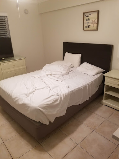 When we arrived, we had to arrive at a different location for check in. This was fine. However we were NOT given our parking pass making us get flagged and almost towed overnight, on night 2, of our 2 day stay. We then got to the room. It was okay as for size. It had a small shower in room 10. There is NO WAY a large person would fit. Come to think of it the entire bathroom is NOT ADA STANDARD. My 5' 11" husband had the shower faucet in his face to shower. I at 5' 5" felt claustrophobic while in the bathroom. The entire bathroom was simply too small. ||On the first night I realized my shower was probably never cleaned, a wash cloth from the previous guest was hanging above my head!!! ||There was also the issue of obvious signs of serious need of repairs. Such as ants crawling ON the table. There were cracked and hollowed floor tiles. VISIBLE signs of rust from where leaks happened in the bathroom AND under the AC UNIT. Out dated faucets and sinks. Nothing is modern. In the bathroom the screen was broken, like someone had broken in. This was NOT what I was expecting from such a highly rated place. Simply poor looking furnishings, and exterior. This place, if it were not on the beach would cost a considerable less amount. It is NOT worth the finances spent. I will not refer friends and family here. It is a hole in the wall away from the beach but walkable to A1A. However, the view outfront of the hotel is nothing but construction and all under renovation so there is no view and streets can be difficult to navigate as sidewalks aren't always available. Walking home we almost got mowed down by someone flying down the street. When it came to check out no one gave instructions as to how to confirm. ||||In the room , I found the pillows to be okay but the thin blanket thing they have is NOT enough and there is NO OTHER LINEN available in the room. ||||As a native Floridian, I have traveled to MANY PLACES. I have stayed at high end and low end. Although it was suggested to me as high end, I have been to other low end resorts that offer better pricing and way more bang. ||Unfortunately I was highly unimpressed. It was a bed. That's...