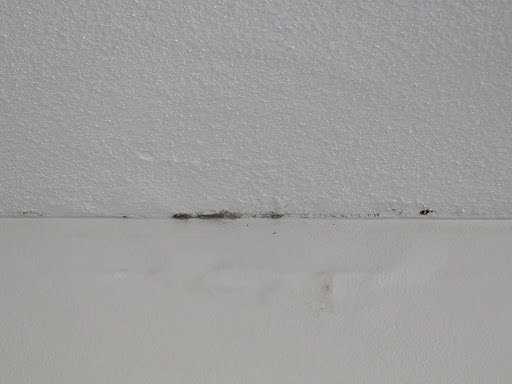 On our way out I noticed that the wall where I previously noticed a spot at was bubbled. I then investigated it a little further and realized the spot wasn't just any spot, it is black mold growing.