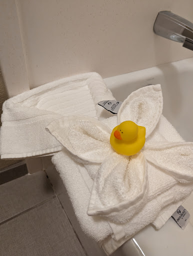 Read moreI am always impressed with THIS Comfort Inn especially!!! ....and we stay at choice hotels a lot! It is very very clean, very comfortable bed, love the little rubber ducky! the set up is so cute! The breakfast is always great too! The time prior to this time when we stayed I did a Facebook post ...a reel about how great it was. And told people to stop there and try it sometime! It is a great spot to stop when we go to Colorado. I do need to say there was a couple things this last time that I need to mention. I was going to do another post for this comfort inn... but... Upon arriving no one was at the desk. I waited and waited and then called the front desk while there. Someone answered and I explained I was at the front desk. They said I am so sorry I will be right there. My husband came in to see if I was alright even... lol. When she came she apologized and said she had to run to someone's room about the TV. Don't get me wrong I understand. We are business owners as well for over 30 years. More than one business and we understand trying to find help these days can be challenging so may have been short handed. I wasn't upset about it. But the second thing.... I still have not heard back about this issue. I forgot my electric tooth brush in the room. Called 3 times... I realized it when we arrived at out next destination the next day that i left it. 100% sure. They have been telling me they don't think anyone found it but not sure. I understand if it was just a toothbrush... but this was a nice electric one. We told them we would be back through on Monday and would pick it up. But they still did not have it. Today it's been a week and no tooth brush. We will be going back through for work in Colorado again in another week. And we will see. But it is a Very nice hotel. Just hope they come up with my electric toothbrush. ...