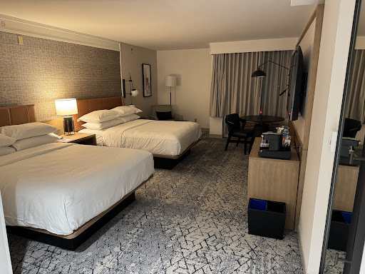 Read moreI stayed at this hotel for a conference. I was here for 4 nights total. My first impressions of the hotel were top notch. I had a king room on a higher floor. The room was very cool (temp) and refreshing after a long hot day traveling. I had a view of the train below and the moon at night. First night's rest was great. Bed was comfortable. Bedding was adequate and clean. First morning up and out and that is when I started to notice few minor things that changed my excellent review. The TV volume brightness kept going in and out. The shower pressure was light and the nozzle too low. There was no fan in the bathroom, so everything steamed up fast. The wi-fi for basic internet was so slow I couldn't do simple email. It kept telling me I didn't have access. It was not great. A couple of other minor things. The coffee shop closed too early. For the entire time I was there, I never got to visit the shop and I was often on a hunt for coffee at 2pm needing that afternoon bump. Yet, there was only black coffee being served at the bar and it took me 20 min to get that order from the bartender. And that last day, I decided to go to the conference hall a little later and the housecleaning staff tried to walk into my room two times in no more than 5 min, despite the sign on the door. So, it was all those minor things that just kind of built up and made it difficult to see all the good things. And there were good, no actually, great things. For example, the staff were super nice and responsive to any and all requests. I don't think there was a single rude person on that entire hotel staff (with the exception of the snafu with the housekeeping staff). The hotel was quiet really quiet in my room. I didn't hear anyone or anything outside of my room. That is unusual for such a busy hotel. And I already mentioned the air conditioner, but it really made coming back to my room a thing to look forward to every evening. In June in Texas, that is a must have. So, that is why I gave this hotel a 4. They are on the right track. They need to improve their food and beverage options and service. And they need to look at the details a little bit, but overall, they are running a good ship. Oh, and FYI, I just called to get a duplicate receipt from the hotel. The staff person was so kind and on top of it in customer service. So when I say their staff are top notch. I mean, top...