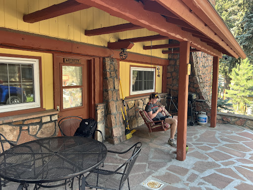 The road in front of the property (County Road 73) was busier than I expected but the resort is set back a ways from the road and fairly well shielded by trees. A small creek runs through the front of the premises and access to the mountain town of Evergreen is very handy.