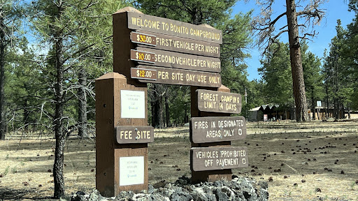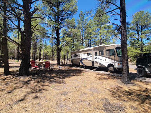 We stay here for four nights during the week of Memorial Day (May 24-27, 2024), site was 44, which is a pull in drive way, fit a trailer and a sedan. (Keep in mind there is a fee for a second vehicle.) Not to far from the restroom ( the cleanest restroom there is) the host really take care of the place, has a facet for cleaning or getting water ( just don't wash your dishes there, not allow) Be ware if ya'll are heading in the summer, there was a few yellowjacket and wasp, we brought a trap to prevent getting strung, didn't get strung but get one if you needed. There were a couple of flies, friend got a fly trapper too so took care of that. When we went, there weren't mosquitos but again, we got a spray and sprayed just in case. I had t-mobile and there wasn't any signal, but if you drive out of the campground, you get signal right away. The site was pretty decent, you can put two tents and have a lot of room, fire pit was pretty deep, a nice concrete picnic table and trees all around; which you can bring a hammock and tied around the truck. Across of the site was the Sunset Crater Visitor Center that leads you to the Sunset Crater Volcano National Monument, worth the drive and visit, there's a few view spots that you can bring food to have a picture and the views are just spectacular. This site is about an hour and forty-five minutes away from the Grand Canyon, about thirty minutes away from Flagstaff for your grocery needs. They don't have showers here but I recommend ya'll to shower at Little America Travel Center (2515 East Butler Ave, Flagstaff, AZ 86004) showers were only $15.00 (tax included) and they have a freaking bathtub with a separate shower. You have an hour to take a shower or bath, they provide with one towel, hand towel and a mat towel. Especially after a long day at the Grand Canyon, a much needed shower that last more than thirty minutes is great. I hope this reviews helps to anyone that is planning...