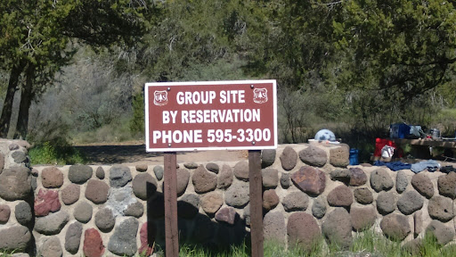 It's a beautiful site. Vault toilets, covered pavilion, large bbq grills, plenty of tables, and trees. Must be reserved as it's a group camp site. There is no water, no electricity and no cell signal! None at all. This is primitive camping with amenities. Or RV camping with no disposal. Don't forget your broom, trash bags, toilet paper and...