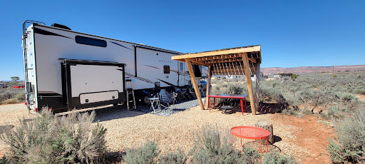 Read moreFrom this point forward in our lives, all RV campgrounds will be compared to Dark Sky RV Campground. It is truly amazing in so many ways. Although some would call it "luxury camping", that might give some people the wrong idea. There is no concrete patios, no swimming pools or hot tubs or gyms at Dark Sky. ||I would call it "boujee camping". The campsites are spread out so you're not fearing your neighbors slider knocking into your camper or wallowing in their BBQ smoke. There's 50-100 feet of separation on the main loop and 20-50 feet of separation on the electric only sites, which mostly hosts vans. Each site is paved in rounded cobbles to keep down the dust, with reddish pea gravel in the pedestrian areas. Each site includes a wooden and cloth shade structure. Ours included two chaise lounges, a dining table and two chairs, a hammock and a propane fire pit.||The bathrooms are neatly designed with cozy tile, heat and good ventilation. The showers also have that cozy clean feel too. There's a large covered terrace area with a BBQ and pizza oven and two propane fire pits with various outdoor furniture to relax and hangout. There's a small store with snacks, beverages and merchandise all on the honor pay system via Venmo or cash. A similar terrace will be built on the smaller loop in the near future.||The staff was amazing from the first minute to the last minute. Everyone of them was more about making you feel like family that mining your wallet for cash. They were all super friendly and helpful. On Thursdays, they host a social with beer and wine and snacks and it really amounted to more like a pot luck dinner. We spent a lot of time chatting with one of the owners and it was clear that the guest experience was their number one priority.||We were there for four nights and we are already thinking about spending a week there next time. Kanab is a great central location for visiting the national parks, various state parks and a host of other attractions. It was also a great place to hand around and slow down the...