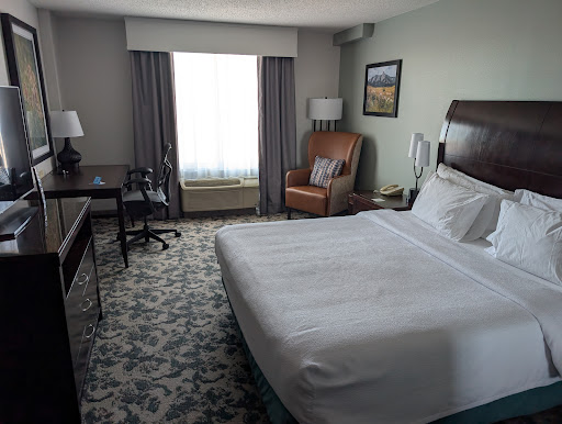 Read moreI would’ve given this hotel five stars as check in was easy, the front desk people were nice and the room was clean. The bed was pretty comfortable. Not the best but not the worst and I slept well so that’s all that matters. However, I went early in the morning to book the room another night as I was staying longer than anticipated. That went well but afterwards, I decided to eat a bit before laying back down a bit as it was 6:30am. I didn’t see the sign for food but I wasn’t really hungry so I just grabbed one sausage link, 2 tiny potatoes and literally one bite of eggs, and a half cup of orange juice. The lady brought me a tab. I said what is that for. She said the “buffet.” I said what buffet. There’s eggs, sausage, potatoes and green chili and I literally took a birds size portion. The lady got upset, yelling at me, didn’t I see the sign. I said what sign and no I didn’t. Why would I pay 15$ for four bites of food. She continued being rude and raising her voice. I just paid the bill and left. I thought about grabbing a bunch of food and throwing it away but that’s wasteful. It’s pretty sad that a hotel chain like the Hilton wouldn’t offer some breakfast, let alone charge 15$ more, on top the room charge, for literally, the worst “buffet” I’ve ever seen, even over small hotel chains. So it’s my fault for not seeing the sign but I will never stay again at a Hilton. And definitely not this one if they can’t even provide a piece of toast without...