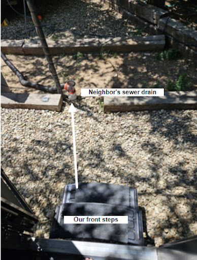 The front door of my trailer opened up just a few feet away from the neighbor's sewer drain.