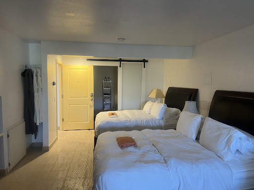 First off the couple that run this hotel (Dane & Anne Marie) are extremely friendly and accommodating. Anne Marie was at the door to greet us when we arrived and shortly after showed us to our room. The room was a really good size for two & very clean, there was also a hot tub in the room!! That was half the reason I booked this particular room, I wanted the hot tub experience for me & my wife. After the hot tub we went and got some fresh cookies that Anne Marie made from the kitchen along with some popcorn to relax in bed with a movie, they have a pretty large selection of DVD's to choose from. We slept really well and they also have a ton of pillows in bed which I love! The morning after Dane cooked us a nice breakfast, I had the peach french toast, eggs and fruit, I have a milk allergy and Dane was still able to cook a delicious breakfast with oat milk. Me & my wife had a great conversation with Dane while we ate and then we went outside to the balcony afterwards. THOSE VIEWS!! It's absolutely beautiful where this hotel is located and you can see everything from your room and on the upper floors. It's also super quit and very peaceful if you just want to sit outside night or day.