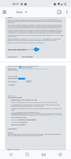 Read moreWe love the Pine Valley Recreation Area and you will too IF your reservation agreement matches the campground rules on arrival.