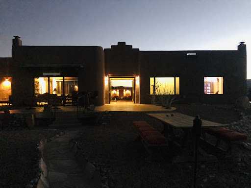 You will find breathtaking landscapes, interesting grounds with southwest decor, a cozy/comfy/quiet room, a viewing roof, a wine list, games, a lake for recreation, hills for hiking, a reading area with books and a fireplace.