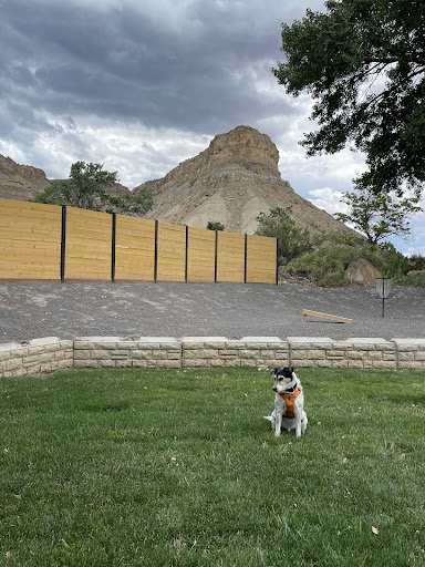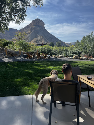 The extras: 1) each room has a back door to their individual patio area. The patios are partitioned off from the other rooms, which I loved. They have 2 patio chairs with a little table. 2) the backyard off the patio is shared. Plenty of grass for our dog to enjoy sniffing and chill-axing. There is a slightly raised area on the backside of the grass that includes games (frisbee, corn hole) and a fire pit. Honestly that backyard for my dog put a cute little hotel over the top for me. 3) area was quiet for us. 4) view of the Mesa’s was nice while sitting outside. 5) Finally, Pedro, the owners' dog. He’s an additional bonus. If you have a fur baby that wants to play -...