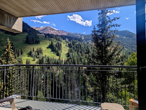 Read moreWe have been to Snowbird for several family reunions. This time we had 6 different family groups staying in 6 separate units. Each unit had a full kitchen and then an attached bedroom. There was room for 6 to sleep in each unit. We were hoping to rent a larger unit for our meals, but there weren’t any available, so we rotated rooms to have our meals in. ||We were pleased at the discounts we got on both our room and the all day summer activity passes. We had 14 grandchildren. All but one baby participated and thoroughly enjoyed the activities. The best time to go was right at opening at 11a.m. and then in the evening about 6 pm. the rides emptied right out and we had them to ourselves until close at 8 pm. We were able to go back to the room have a bite to eat and then go back out again.||The rooms are a bit dated, and yes it did get warm without any air conditioning. We left the screen doors open while we were in the room, but didn’t feel comfortable at night leaving them open as we shared the deck with several other rooms. (I apologize if my grandkids bothered any of the people in the other rooms. We tried to keep them right outside our room).||Positives|1) Fantastic view of the mountains, the view can’t be beat. We saw a moose outside on our first evening there|2) TV, bathroom and beds all in good working condition and clean|3) Hot chocolate, apple cider available in the front lobby for free|4) Swimming pool nice temperature|5) Extremely courteous front desk personnel. |6). KC from maintenance was a fabulous help. We tried to tip him and he declined the tip saying his job was to make our trip as good as possible. He put baby safety railings up outside one of the rooms, added two leaves to our table to make it bigger, brought in extra chairs, and helped us in other ways. |7) Beautiful location for morning hikes||Cons:|The group of young men at a seminar were very rowdy at night. We could hear their conversations in our room at night from the hot tub. They were really not appropriate conversations for families. Fortunately they shut down at 10 p.m. and it was quiet afterwards. ||Overall we love Snowbird. The Lodge a great place to have a group and cook your own meals. We will continue to come back in...
