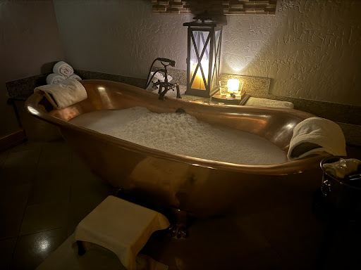 As you walk through the different water features it starts to have more of a cave like appearance, which makes you feel like you’re transported underground almost, but the lighting was far too dim in these rooms. I could see this being problematic for an elderly person with low vision, and for that reason I wouldn’t pick this spa if I wanted to treat let’s say my grandma to a spa day. The water features consist of your usual favorites like a jacuzzi, sauna, steam room, cold plunge, and a large grotto which is coed.