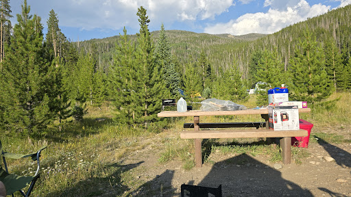 closed during winter||Green, Trees, Water and spacious camping spots. Seems like the Campsites is a part of a forest is recovery. Lots of young trees entwined throughout the campground. |||Drive in, take an envelope at the entrance and find your spot. 26$ a night that can be paid by exact change or CREDIT CARD - which is a refreshing form of payment in a campground.||Leave the stub on your chosen site and drive back to drop your payment.||Firewood shed, is right next to the payment station. 6$ per stack, to be paid in cash. There are envelopes for this as well.||Quiet hours as always 2200-0600.||Check out till 12pm.||Campground fills up even on weekdays during the summer time. You can find out if the campground is full when u enter park - just ask.||First come, first serve.||However a lot of people stay just for one night, so if you plan on a late arrival on your first day, find a motel nearby or camp outside the park.||I've arrived on Thursday, at 1130am and it was quite empty. When I came back that night, the campground was full.|||There is an option for dispersed camping as well, but for the life of me, it seemed impossible to be the driver and navigator to the right spot. Most spots are suitable only for 4x4 cars, which I didn't have anyways.|||RMNP doesn't give out elaborated info at the entrance to the park in the brochures they hand out, which means you need to do your homework on the hikes you want to take, or go to the visitors center for it, preferably the ones outside the park. The alpine one is hectic. Even when you get to Trailhead, the info on the hike is scarce - like elevation gained, which is critical for long hikes. Mostly you'll find the same noticeboard about RMNP.|||Back to the campground||There's a daily program with a ranger at 2030 on various topics.|||Every campsite has a spot for a tent, picnic table and a fire ring. Two campsites share a bear proof food storage locker.||It says they have been spotted in the campground before.||It's still raining in the summer, so I advise you to pick higher spot if you have a tent.||I was camping in campsite 18. There's drinking water faucet very close and a clean vault toilet, a short walk away.|||Toilets - vault and flush with running water and electricity outlets. They are located throughout the camp. The flush toilets are lit at night.|||Mosquitoes - not many, but they are there.||The Colorado River runs close by.|||Haven't seen moose, not an early riser, but elks walked just past my tent at 7am and woke me up with their cries 😁|||Weather was perfect, rained one night, but was sunny all day long. Expect a variety of seasons during your stay.||There were noisy thunders too, but with no rain.|||T-mobile doesn't work in the campground, but if you exit the park, towards grand lake, there's reception. ||Download the area on Google maps for offline use.|||If your in need for groceries/gas, they are available about 11 miles drive from the campground.||Mountain Market.|||If you have any more questions, feel free to ask ||Have lots of fun 🚶♀️⛰️🚶♀️🏞️||*Some pics are from the campground and some...