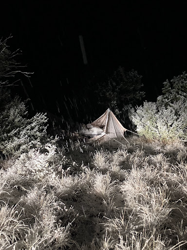 I walk away feeling like this place was a huge mistake. We decide to crawl into bed at 6pm because we are freezing. Yes, we have our base layers on, sweatpants, jackets, hats, and mittens because that heater is doing NOTHING to warm our tent. My husband and I are looking at each other like "Do we try to tough out the night?" Well, God helped us answer that question because at 9pm the tent RIPS OPEN and collapses on top of us.