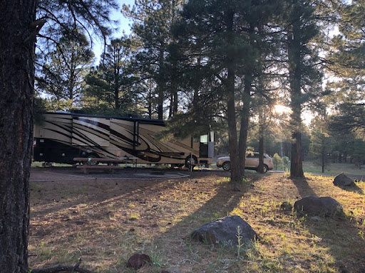 Read moreThis was our first time to this beautiful campground and the park hosts are truly PHENOMENAL! Two caveats: The 18 miles of unpaved, washboard roads into the campground are not good if you have a 41-foot Class A Diesel pusher like us (see picture). We could only drive 5-9 miles per hour on these roads, which meant that we had a 2-hour drive on these washboard roads alone. Many parts of the road don't allow 2-way traffic, so we drove our rig 'white-knuckled' whenever there were any oncoming vehicles from the opposite direction. Also, there was SO MUCH dust being kicked around on this road that there was just no way of avoiding breathing it during this 2 hour drive from the I-40 to the campsite. The dust gets heavily caked over everything - inside your toad, your Rig, etc. It is really worth considering these washboard roads to your travel plans ahead of time. We were the only Class A Diesel Pusher in the campsite and we felt really dumb really. Secondly, we use AT&T cell service and that does not work out there (one bar of cell service). We have a cell booster on our Rig which bumped it up to one additional bar of cell service but when we ran into trouble with our Rig while camping, we had to borrow a Verizon 'jet pack' from the park hosts - which were very accommodating and understanding. All in all the park is beautiful and the park hosts are better than anywhere we have seen. Tent camping, trailer camping here is good but I would strongly re-consider if you have a 41-ft Class A Diesel Pusher that you 'baby' and clean every...