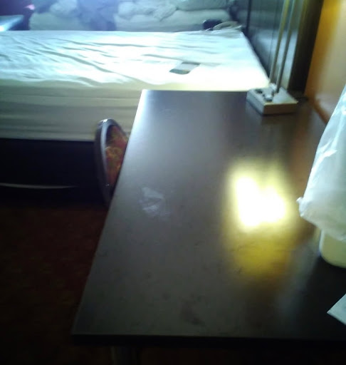 Room was very clean and extremely spacious. Course, it was a handicap room. It had an extra side suite space kitchenette with sink, counter, cabinets and table with chairs and a window!
