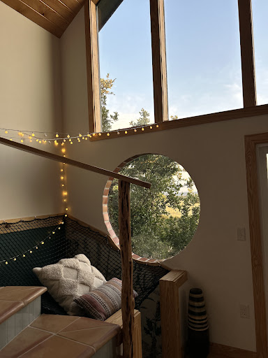 There is a loft with a built-in comfy daybed and a huge window with an awesome view.