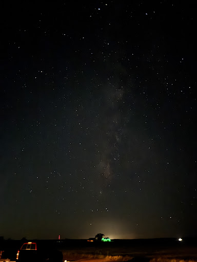 I stayed in a large trailer with 3 adults comfortably. There is tons of storage space and a pretty nice sized mini fridge and microwave. The little Astro turf “lawn” out front is the perfect spot to lay down a blanket and stare at the stars or the sunset with a coffee or cocktail. The stargazing here is really good! 🌌
