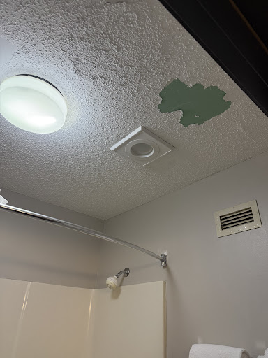 The carpet was extremely dirty, with big dark spots, perhaps asphalt from the construction workers that were staying there. The outside doors were unsecured, propped open because the locks didn't work. We had to keep the windows closed due to the stench of the dumpsters right outside. Otherwise the room appeared fairly clean, but dated.