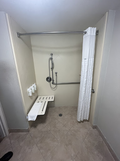 Read moreFirst off, I must say the word roaches!!! They were everywhere!!! Please watch video below Second, I will say nighttime service is horrible . The man who works the front counter is absolutely disgustingly, rude, and just doesn’t care . The last time I was here, he was yelling at a woman in the lobby about her service dog, demanding that she provided paperwork. I waited my turn in line and then asked him where the icemaker was. He then pointed and said to me “if you’d look you find it.” I brushed him off got my ice went back to my room. This time I went into the snack area to go and get myself beverages and a candy. I walked up to the register and he told me nine dollars by then proceeded to pay with my phone like I did earlier in the day with the day staff. He gets very loud with me and tells me cash only I said I’m sorry I don’t have cash. Can you charge it to my room? He gets super mad at me and tells me, but don’t you understand that my computer doesn’t work it’s cash only lady. I walk away abruptly to my room to go and get my money come back. My snacks and drinks are now gone. My snacks were just thrown back on the shelf hastily. So I put the money on the counter walk back to the refrigerator and collect my items. He then comes out and says you’re short. I said I gave you nine dollars sir that’s what you told me. The total was he called me a liar and said that he never said that he almost doubled the price so I put back my snacks and only got the three beverages. He then told me he was going to call the police on me because I was a thief. Everything was on camera My husband came out of our room and told him not to talk to his wife that way. The man at the counter said shut up, budd or I will throw you out. My husband, I then went back into our room. I then had to step out to my vehicle and when I did my key card stopped working he stopped my key from working, so then I had to go back to the register and asked for my key card to be fixed he laughed at me the whole time None of the rudest people I’ve ever met.. I have stayed at this location because the breakfast staff and day staff is actually very nice. I can overlook the mold in the shower.(see picture below.) the floor missing tiles.(see picture below.) the way that the bathroom door will not open properly.(see video below.) but this is the first time I saw roaches. (also see video) so after being yelled at and threatened by someone who obviously hates his job and being overrun by roaches, it is safe to say I will no longer come back to this location. I highly recommend you look for a different Motel to rent as this one is not worth the price. Very disappointing because I really enjoyed having a hot tub in the room, but it is so not worth everything else. The owners of this building really need to come and check this out or corporate really needs to come check this place out. It is in desperate need of help and...
