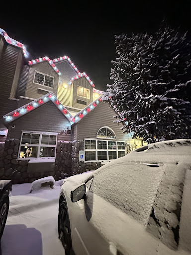 Upon returning from the ice castles at about 10 p.m., my husband and I tried to go to sleep. We had planned to wake up early, enjoy the free breakfast, and then spend the day in Breck. But it was so loud that neither of us could sleep. It sounded like people were stomping around in their ski boots all night long. It kept up until I finally fell asleep around 3 am! And then, the same stomping noises and talking and laughing woke me up at 5 am. So I got maybe 2 hours of sleep.