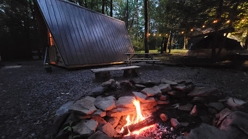 We stayed in the bear cabin, a cute little A frame with quality of life things like a/c and heat (a small tower unit that works great!) and electricity. We usually tent camp (they also have spots for this) but for a one night trip opted for the cabin. It was great to have a bed and charge my phone without worrying about it. Cell service is spotty, they have wifi but we didn't care because it's camping!