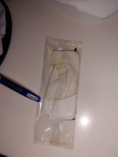 The coffee maker had a condiment pack that has probably been in the room a long time and looks like it had been sitting in coffee. The napkin inside was soaked with dry coffee and stained. Very disgusting thing to find and should have been replaced by housekeeping.